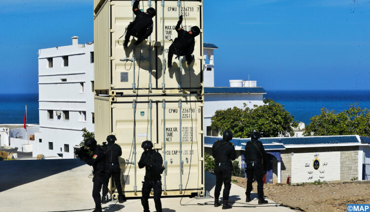 وأشار إلى أنه تم بالمناسبة القيام بتداريب على تقنيات الإنزال السريع من الحوامات العسكرية عبر تقنية النزول السريع على الحبل (FAST ROPE) وكذا طريقة النزول بتقنية Rappel.