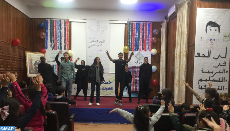 وتميز حفل افتتاح التظاهرة الفنية، التي تنظمها جمعية أجيال للطفولة والشباب بمناسبة اليوم العالمي لحقوق الطفل، بعرض مسرحي شخص من خلاله ممثلون شباب هواة حكايات شعبية احتفالية، كشفت أهمية دور الاحتفالية في دعم الحياة الثقافية بعد توقف اضطراري بسبب جائحة كورنا، من خلال استعادة دور البراح والحكواتي في الذاكرة الثقافة الشعبية المغربية في ترويج الفرجة التي تبقى راسخة من خلال التفاعل ونشر المتعة الفنية.
