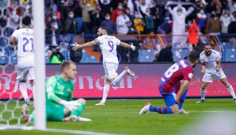 تأهل ريال مدريد إلى نهائي كأس السوبر الإسباني بعد فوزه على برشلونة بنتيجة 3-2 بعد التمديد في المباراة التي جمعتهما يوم الأربعاء ضمن نصف نهائي المسابقة التي تستضيفها السعودية.