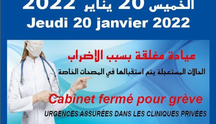 من المنتظر أن يخوض أطباء القطاع الخاص يوم الخميس 20 يناير 2022 إضرابا وطنيا عن العمل من أجل المطالبة بتحقيق مجموعة من المطالب.