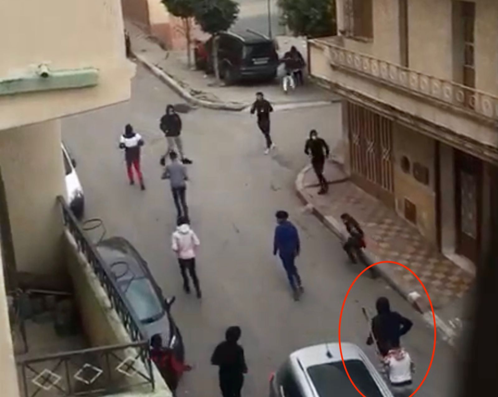 وأظهر فيديو صوره أحد المواطنين قيام بعض المراهقين بالرشق بالحجارة والضرب بالهراوات في الشارع العام، مما كاد أن يؤدي إلى إصابة سيارات وممتلكات المواطنين.