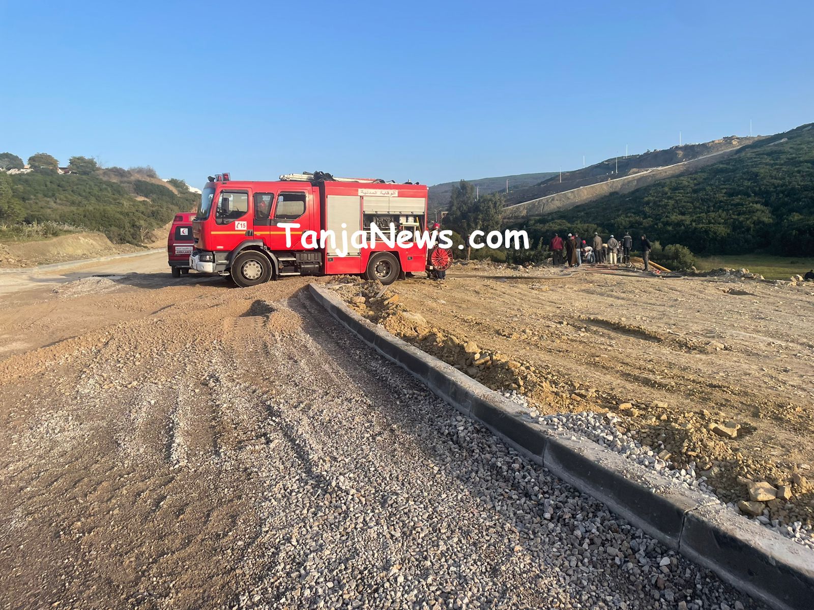 إنقاذ سائق جرافة بعد انهيار التربة عليه بطنجة (صور)