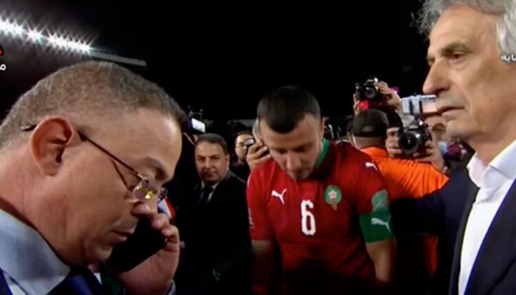 بعد تأهل المنتخب المغربي لكاس العالم “مونديال قطر 2022” اتصل صاحب الجلالة الملك محمد السادس، برئيس الجامعة الملكية لكرة القدم، والوزير لقجع هاتفيا لتهنئة المنتخب الوطني ، وكذلك بالمدرب خليلوزيتش وبقية اللاعبين في وسط الملعب.