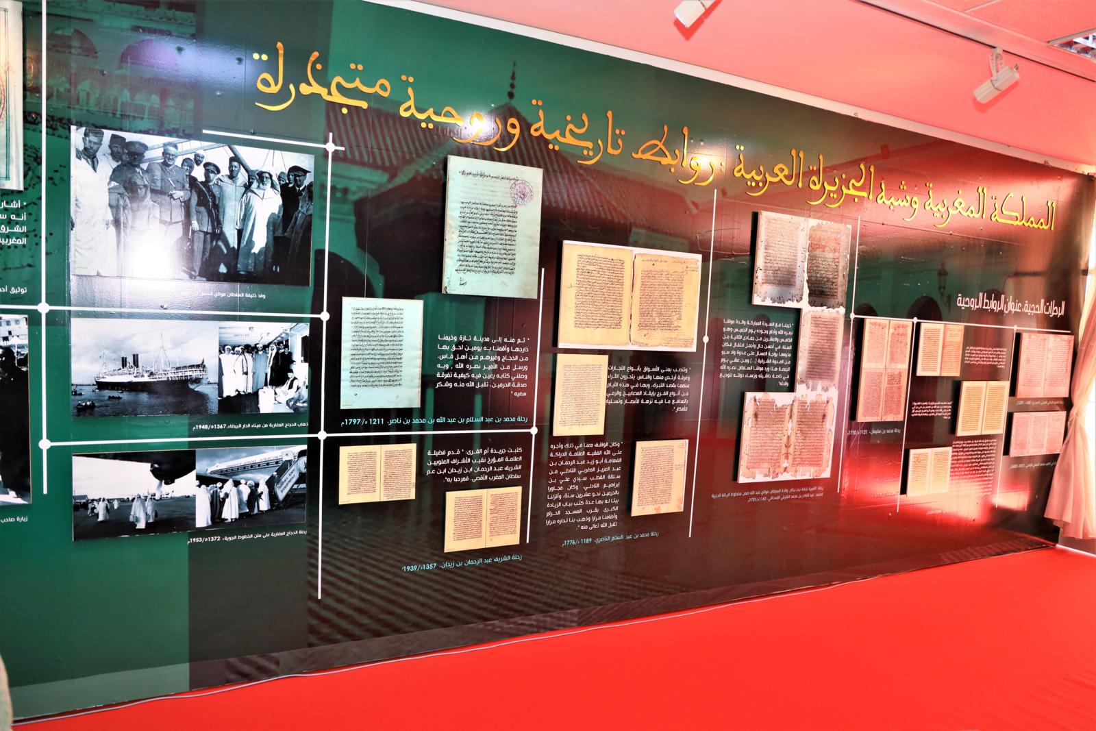 تجدر الإشارة إلى أن المعرض يضم مخطوطات وصور قديمة تبرز وقائع وقصص الرحلات الحجية، من بينها مخطوط للفقيه الحاجي السبتي، يعود لسنة 1289 ميلادية، ومخطوطات لأبي الطيب محمد الحسني الفاسي (1603 م)، ومخطوط الرحلة الحجية لمحمد عبدالقادر بن محمد الشرقي الإسحاقي (1731 م)، الذي يتطرق لرحلة خناتة بنت بكار، والدة السلطان مولاي عبدالله، إلى جانب مخطوطات أخرى. كما يقدم المعرض رسائل دبلوماسية تشهد على انبعاث العلاقات المغربية السعودية وازدهارها .