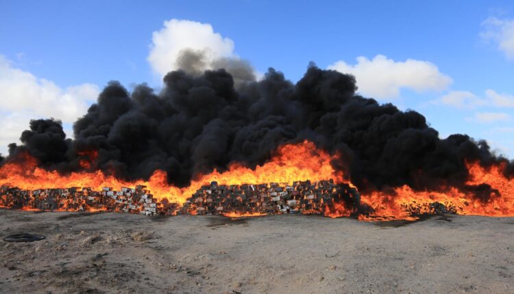 قامت السلطات المختصة، اليوم الأربعاء بضواحي الداخلة، بحرق وإتلاف ما مجموعه ثلاثة أطنان و442 كيلو غرام من مخدر الشيرا وكميات مهمة من المواد المحظورة والمهربة.