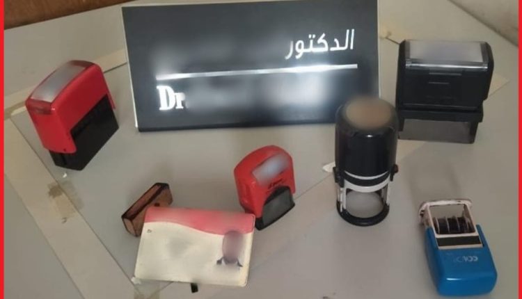 كما مكنت عملية التفتيش المنجزة في هذه القضية من العثور بحوزة المشتبه فيه على شهادة دكتوراه مزيفة، وبطاقة مهنية منتهية الصلاحية، ووثائق متحصل عليها بشكل تدليسي، علاوة على لافتات وستة أختام مهنية يشتبه في استعمالها في هذا النشاط الإجرامي.