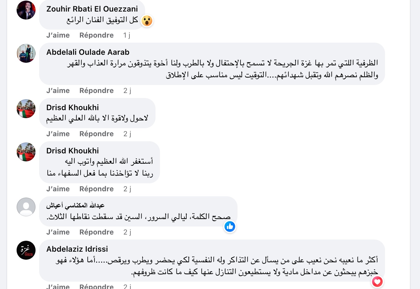 وحسب العديد من تعليقات النشطاء، فإن أهداف هذا الحفل تبقى تجارية محضة، وبالتالي لا يوجد أي داع لإحيائه في ظل هذه الظروف المؤلمة التي يعاني فيها الشعب الفلسطيني في قطاع غزة.
