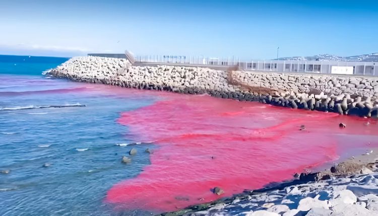 تحديد مصدر المادة الحمراء التي طفت على سطح مياه شاطئ مرقالة