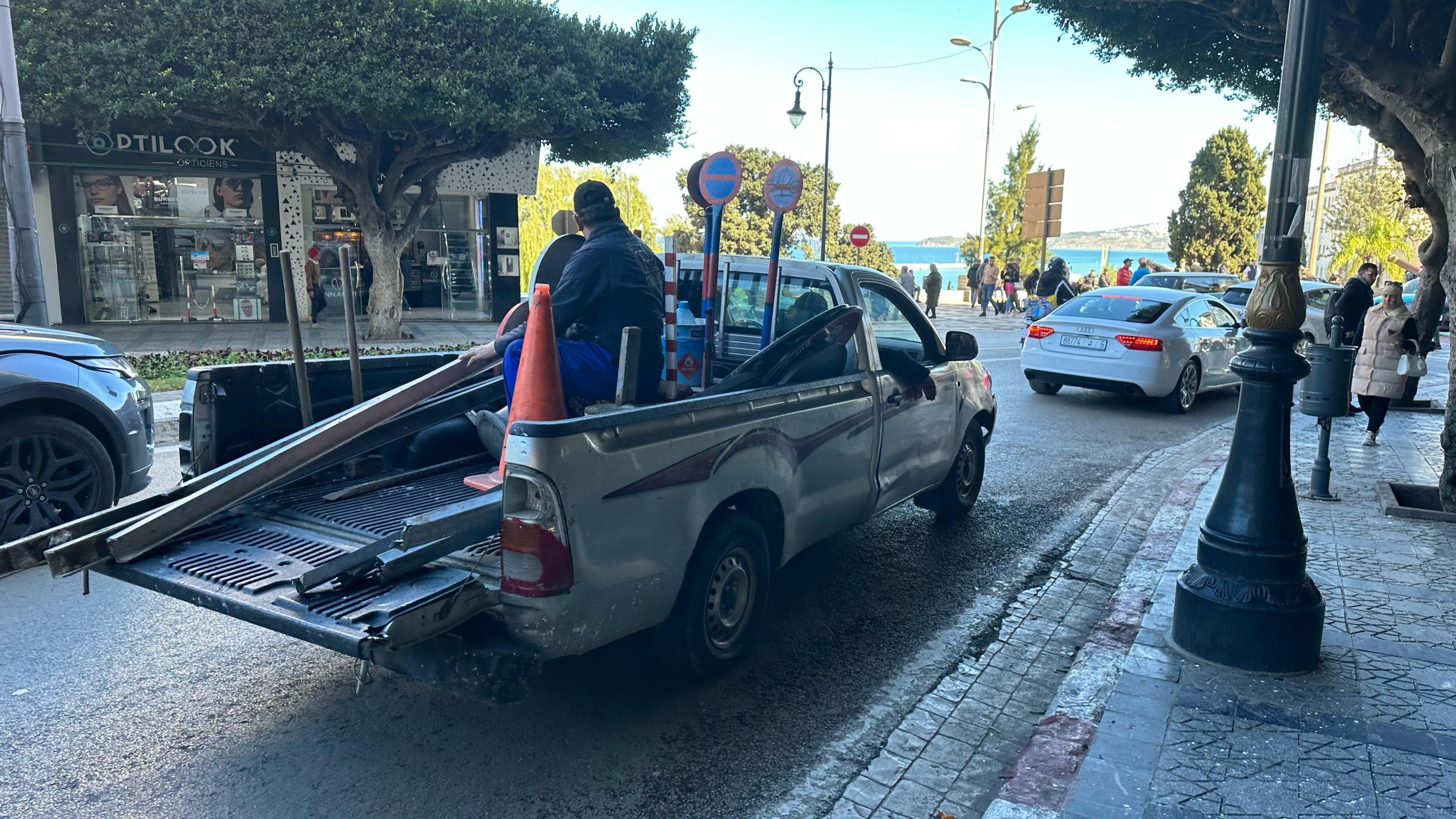 وقد قامت السلطات بحجز عدد من الكراسي والطاولات والواجهات الحديدية الإشهارية، حيث تم نقلها إلى المحجز البلدي.