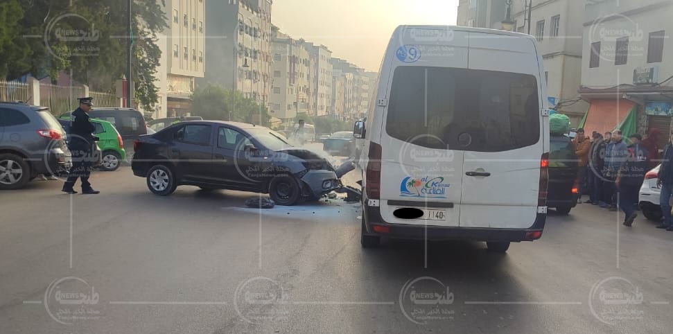 طنجة.. إصابة شخصين في حادث اصطدام سيارتين واندلاع النيران (صور)