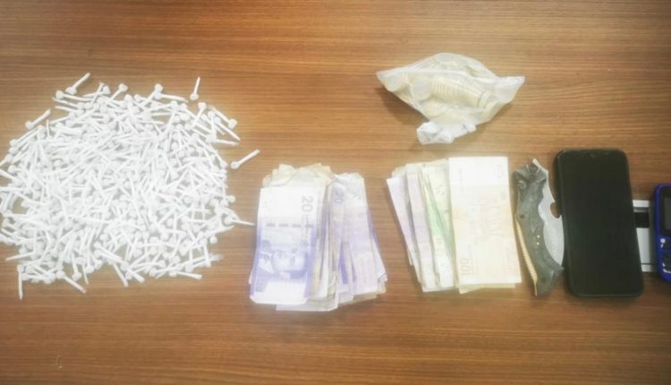 وقد جرى توقيف المشتبه فيه بحي ارض الدولة، وهو متلبس بترويج 36 لفافات من مخدر الهيروين، حيث أسفرت عملية التفتيش المنجزة بداخل منزله عن العثور على 300 لفافة من مخدر الهيروين و ميزان إلكتروني و سلاح ابيضّ علاوة على مبلغ مالي و هواتف نقالة .