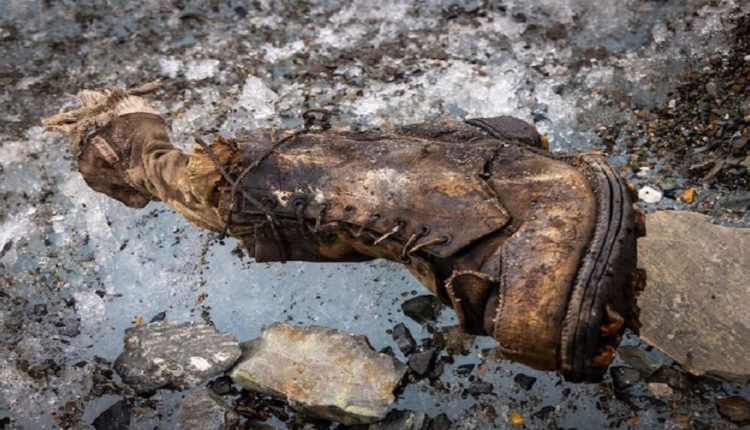 وأضاف التقرير:”في سبتمبر الماضي، وتحت المنحدر الشمالي لجبل إيفرست على نهر رونغبوك الجليدي، اكتشف أعضاء فريق ناشيونال جيوغرافيك حذاء يحتوي على بقايا بشرية وجوربا عليه الأحرف الأولى من اسم أندرو إيرفين”.