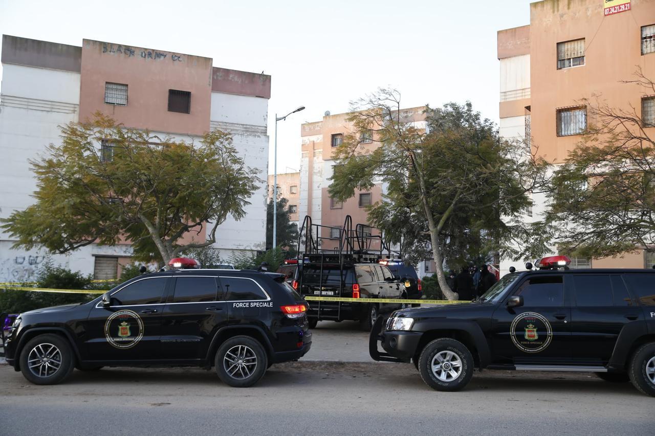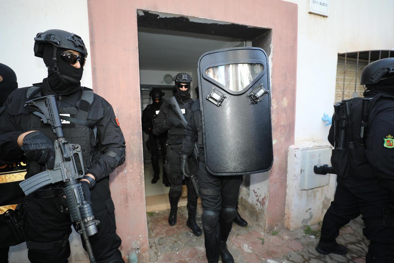 وأوضح البلاغ أن العملية الأمنية شملت اقتحام منزلين في تجزئتي العمران والأمل بحي الوحدة بمنطقة حد السوالم، بمشاركة فرق متخصصة شملت تقنيي الكشف عن المتفجرات، وعناصر الفرقة السينوتقنية المزودة بكلاب مدربة، إضافة إلى مروحية للدرك الملكي مجهزة بقناصة متخصصين في الرماية الدقيقة.