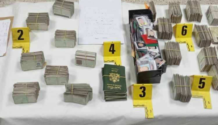 وخلال عملية تفتيش منزل المشتبه به، عثرت الشرطة على كمية كبيرة من الوثائق المشبوهة، حيث تم ضبط 942 وثيقة تعريفية وثمانية جوازات سفر بأسماء مختلفة، بالإضافة إلى مجموعة من الصور الفوتوغرافية ونسخ من وثائق إدارية.