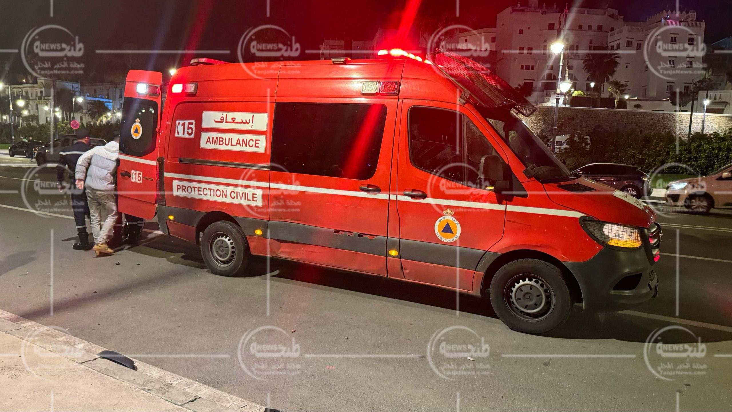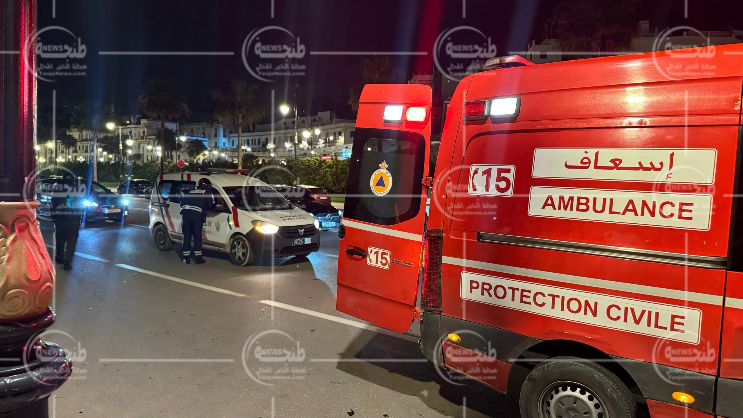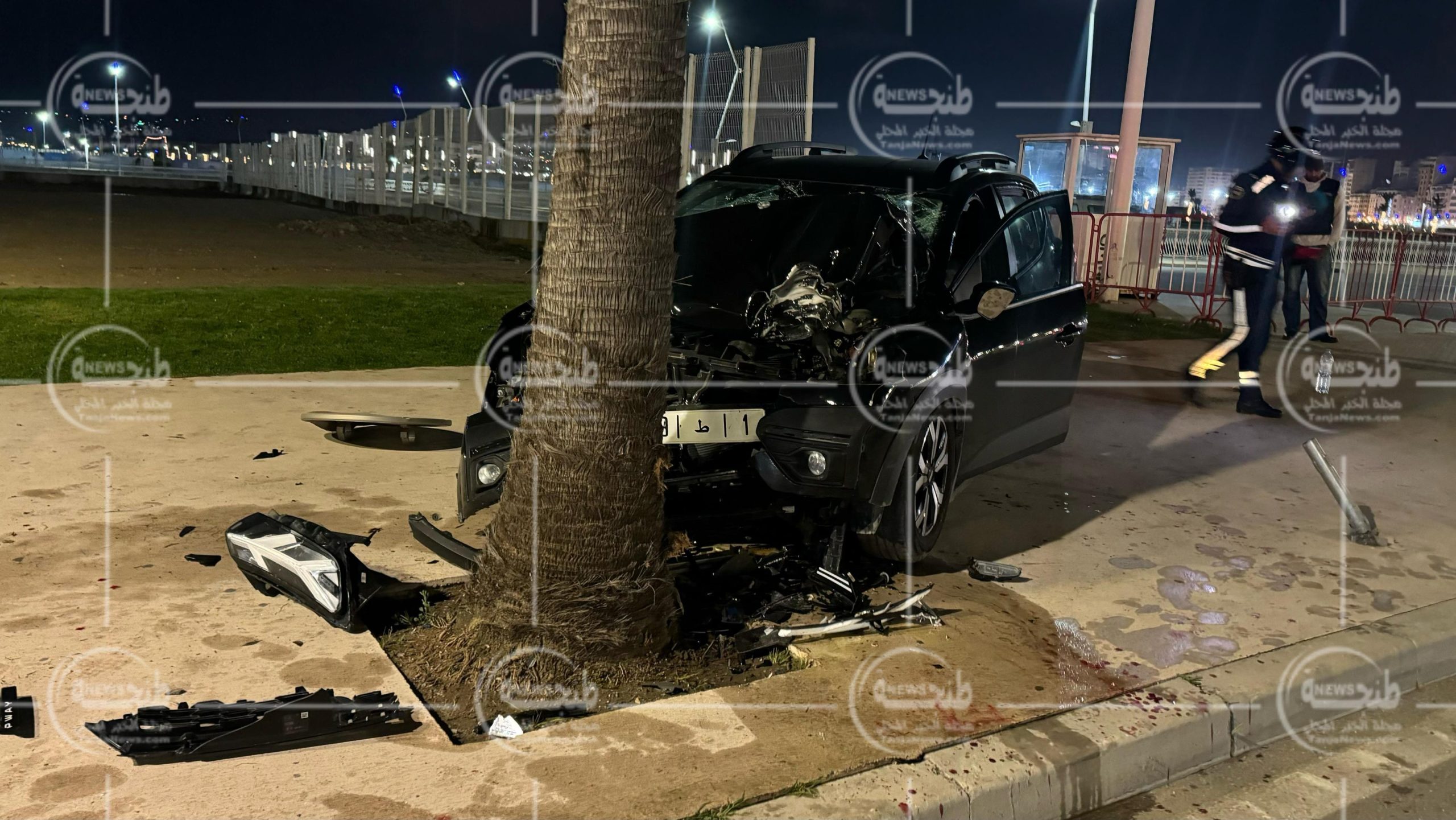 إصابة أربعة أشخاص في حادث اصطدام سيارة بنخلة بكورنيش طنجة (صور)