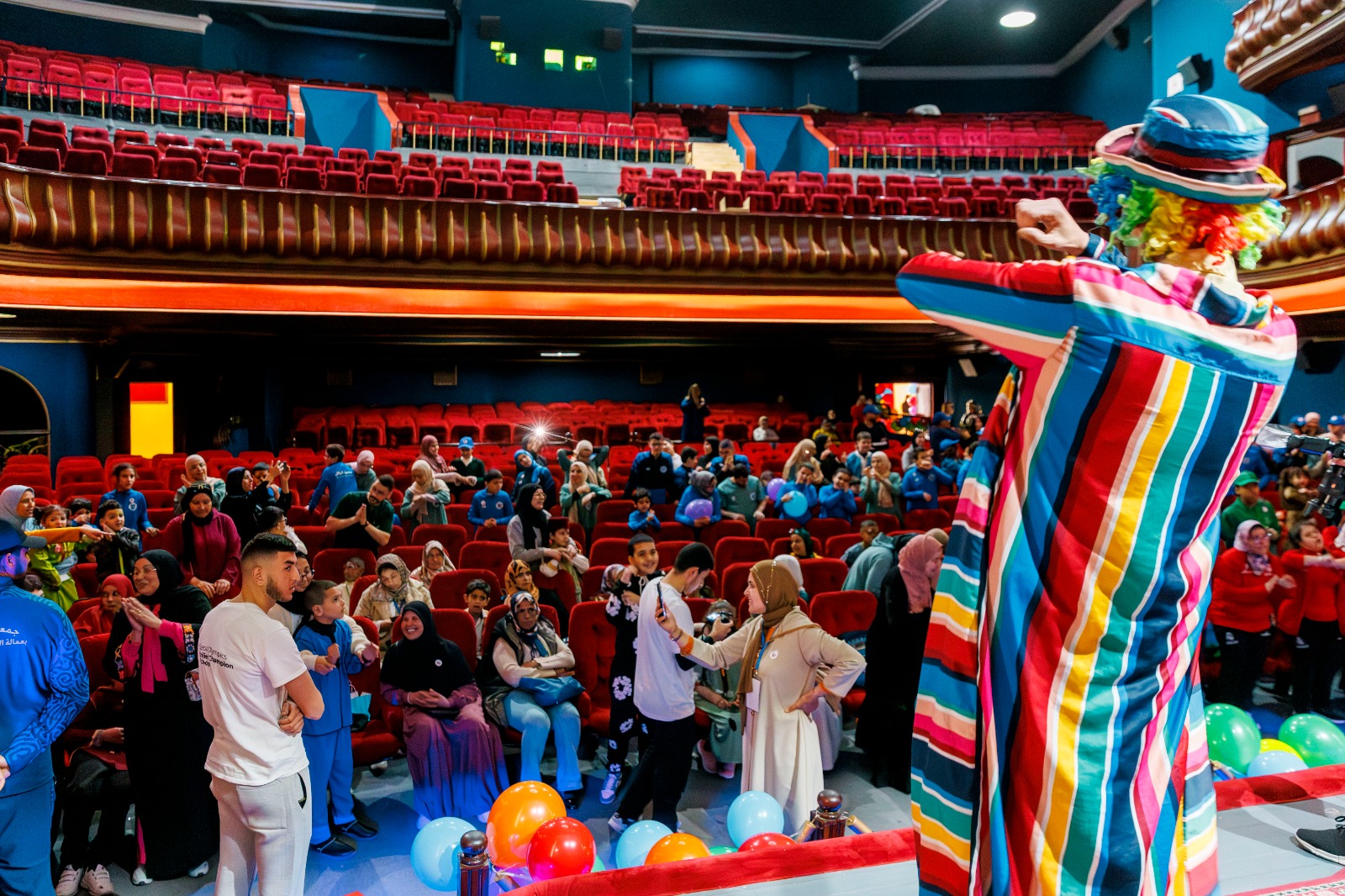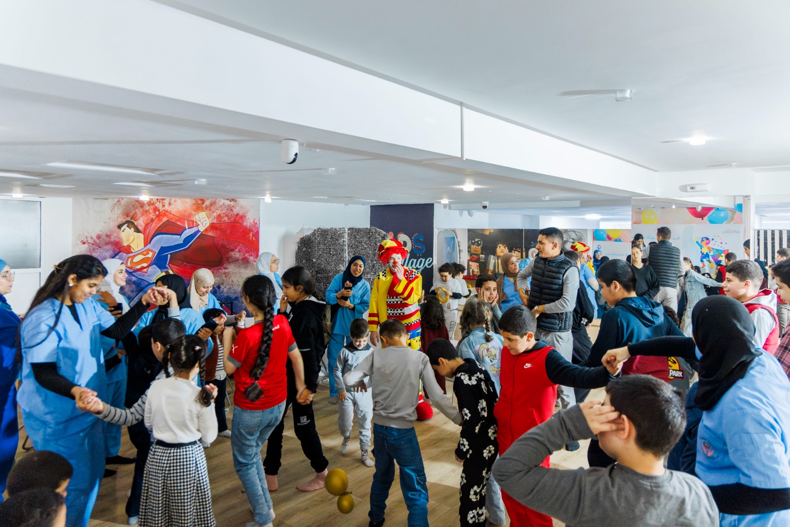وقد عاش الأطفال لحظات من الفرح والتفاعل عبر فقرات متنوعة شملت عروض البهلوان، وفنون السيرك، وألعاب الخفة، فضلاً عن توزيع الهدايا واللعب على المستفيدين، ما أضفى على الأجواء طابعاً إنسانياً دافئاً.