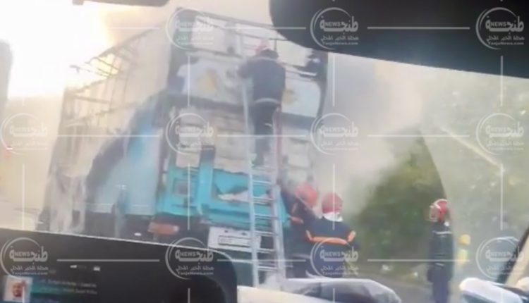 احتراق شاحنة على الطريق السيار طنجة المتوسط