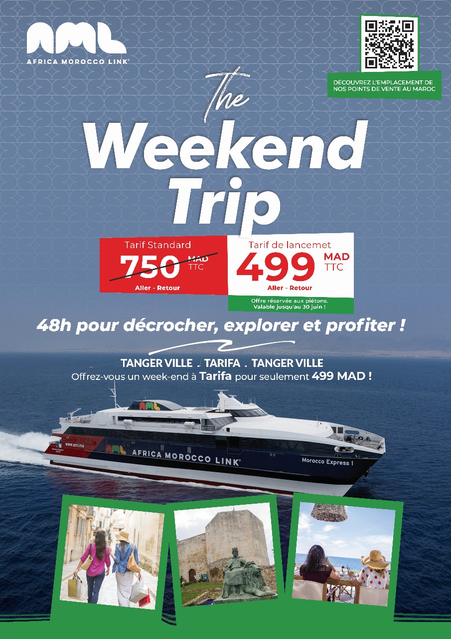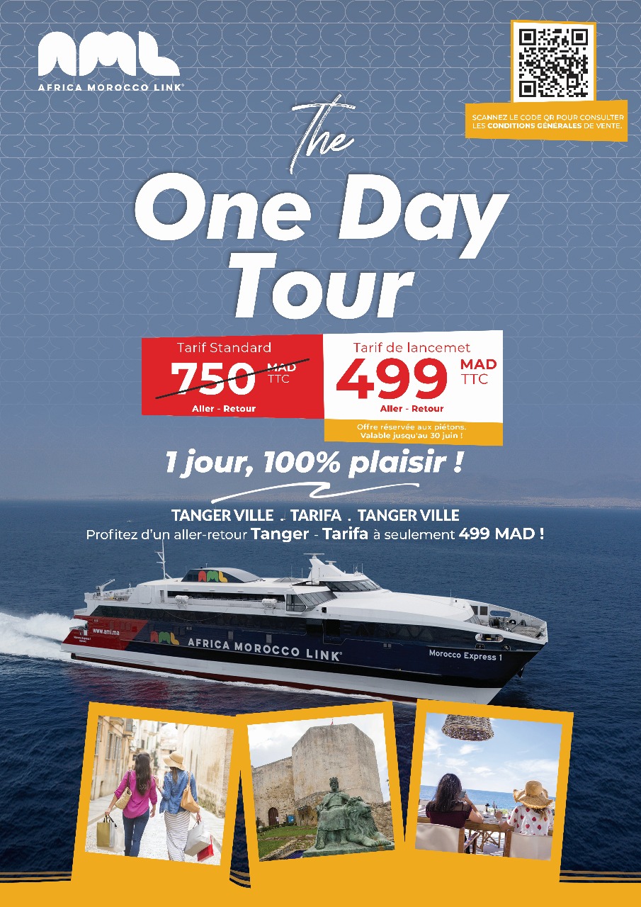 أعلنت شركة Africa Morocco Link (AML) عن إطلاق عرض استثنائي يهمّ الرحلات البحرية بين مدينة طنجة المغربية وطريفة الإسبانية، حيث تتيح للمسافرين فرصة الاستفادة من تذكرة ذهاب وإياب بـ499 درهماً فقط، وذلك ضمن عرض محدود يستمر إلى غاية 30 يونيو 2025.