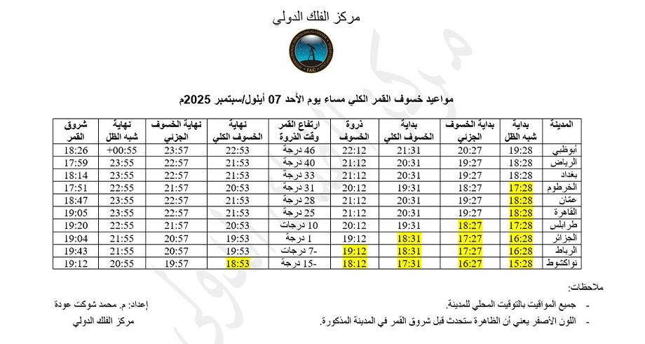 ودعا الخبراء إلى الاستمتاع بالمشاهدة من الفضاءات المفتوحة بعيداً عن الأضواء القوية، مبرزين أن الخسوف القمري لا يشكل أي خطر على العين، بخلاف كسوف الشمس الذي يستوجب احتياطات خاصة.
