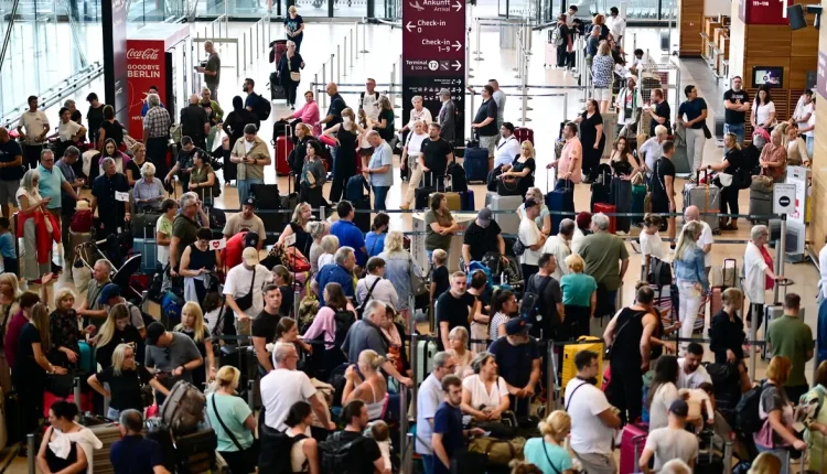وكان مطار العاصمة الألمانية من بين أكثر المطارات المتضررة، حيث دعا المسافرين إلى إتمام إجراءات تسجيل الوصول عبر الإنترنت واستخدام الأكشاك الذاتية لتسليم الأمتعة كلما أمكن.