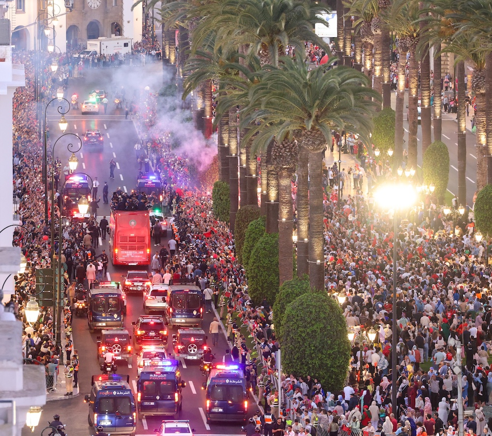 وجاب موكب الحافلة المكشوفة لـ”أشبال الأطلس”، المزي نة بالألوان الوطنية، شوارع العاصمة وسط هتافات جماهيرية وأهازيج شعبية وزغاريد، فيما ازدانت شرفات المباني بالأعلام الوطنية، تعبيرا عن الفرحة بهذا الإنجاز العالمي.