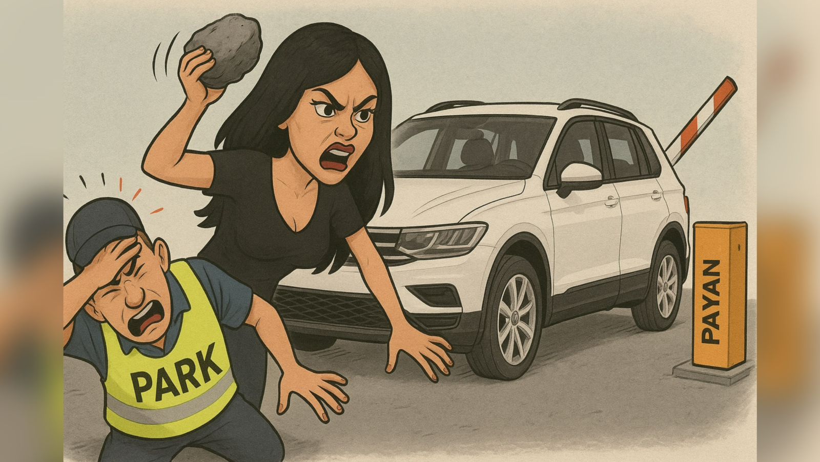 ولم تتوقف الفوضى عند هذا الحد؛ إذ قامت السيدة بإخراج سيارتها بالقوة، عبر الصعود فوق الرصيف لتفادي حاجز الخروج الذي لم يُفتح بسبب عدم الأداء، في مشهد أقرب إلى “أكشن مجاني” منه إلى سلوك حضاري في محطة يفترض أنها واجهة المدينة.