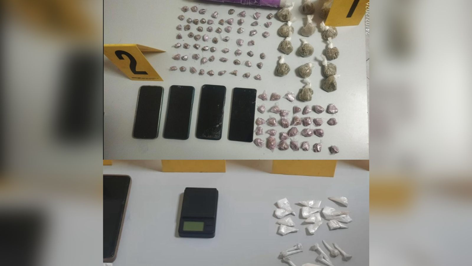 أما العملية الثانية، فقد نُفذت بحي المكسيك، ومكنت من توقيف شخص رابع عُثر بحوزته على كمية من مخدر الشيرا على شكل قطع معدة للترويج، فضلا عن كمية من مسحوق الكيف.