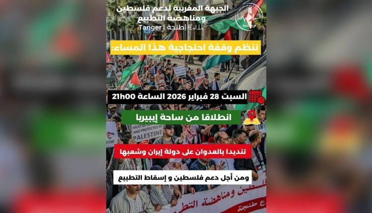 أصدرت سلطات المنطقة الحضرية طنجة المدينة، اليوم السبت 28 فبراير 2026، قرارًا إداريًا يقضي بمنع تنظيم وقفة احتجاجية ومسيرة كانت مبرمجة مساء اليوم بساحة إيبيريا، بدعوة من “الجبهة المغربية لدعم فلسطين ومناهضة التطبيع”.