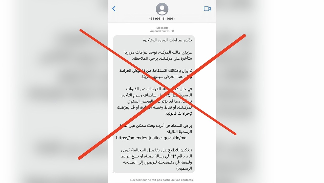 جاء ذلك في بلاغ لوزارة العدل، “على إثر ما تم تداوله مؤخرا عبر الرسائل النصية القصيرة (SMS) بخصوص موقع أداء غرامات مخالفات السير عبر الرادار الثابت، والتي توحي للمستعملين بأن مركبتهم مؤهلة حاليا للإعفاء من الغرامة وأن الموعد النهائي للسداد يقترب، مع التحذير من أن عدم الدفع قبل تاريخ 05 أبريل 2026 سيؤدي إلى تحصيل المبلغ كاملا بالإضافة إلى رسوم التأخير”.