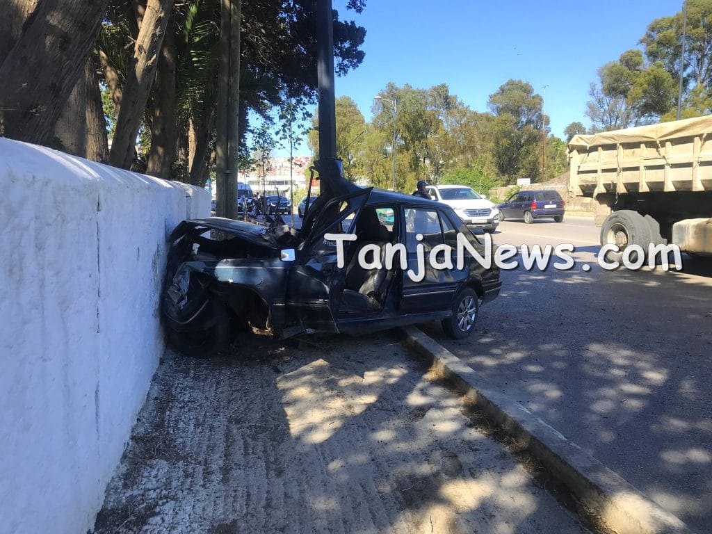 بالصور.. سائق سيارة ينجو بأعجوبة من حادثة سير خطيرة بطنجة