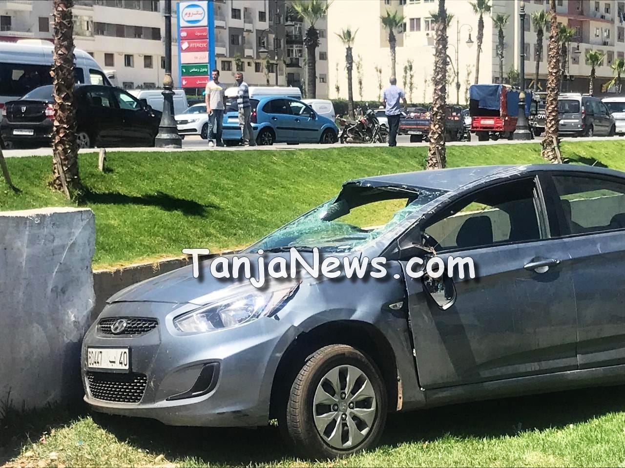 بالصور.. انقلاب سيارة مسروقة من وكالة لكراء السيارات بطنجة