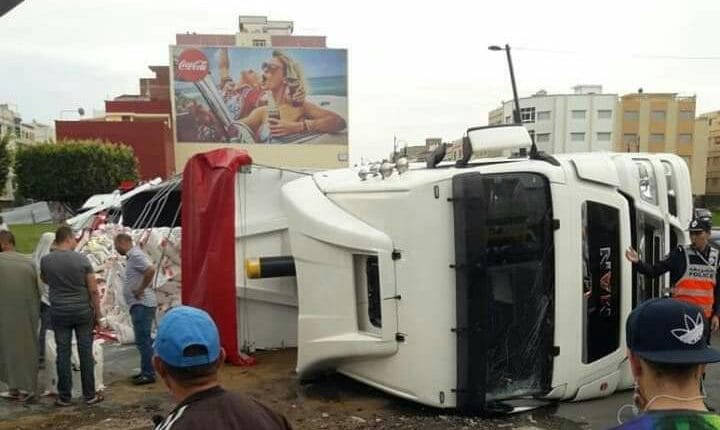 انقلاب شاحنة محملة بطحين القمح بدار التونسي بطنجة