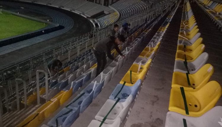 ونشرت جمعية “الأزرق الطنجي”، عبر صفحتها الرسمية بـ “الفايسبوك”، صورا توثق شروعها في تحضير “التيفو” الذي سيغطي المنطقة المخصصة للجمعية.