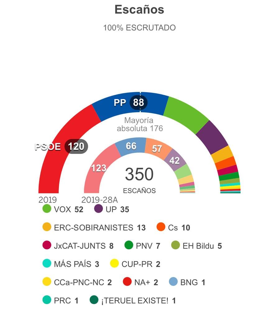لقد بينت النتائج الانتخابية للعاشر من نونبر، أن “الحزب الشعبي الاسباني” و”حزب سيوذاذانونس” وحزب “فوكس” اليميني العنصري هي ثلاث تشكيلات حزبية تتقاسم نفس القاعدة الانتخابية، وما يبين ذلك هو التلازم الذي يحصل بين ارتفاع عدد أصوات وعدد المقاعد إحدى التشكيلات المذكورة مع انخفاضها عند التشكيلتين الأخريين أو العكس.