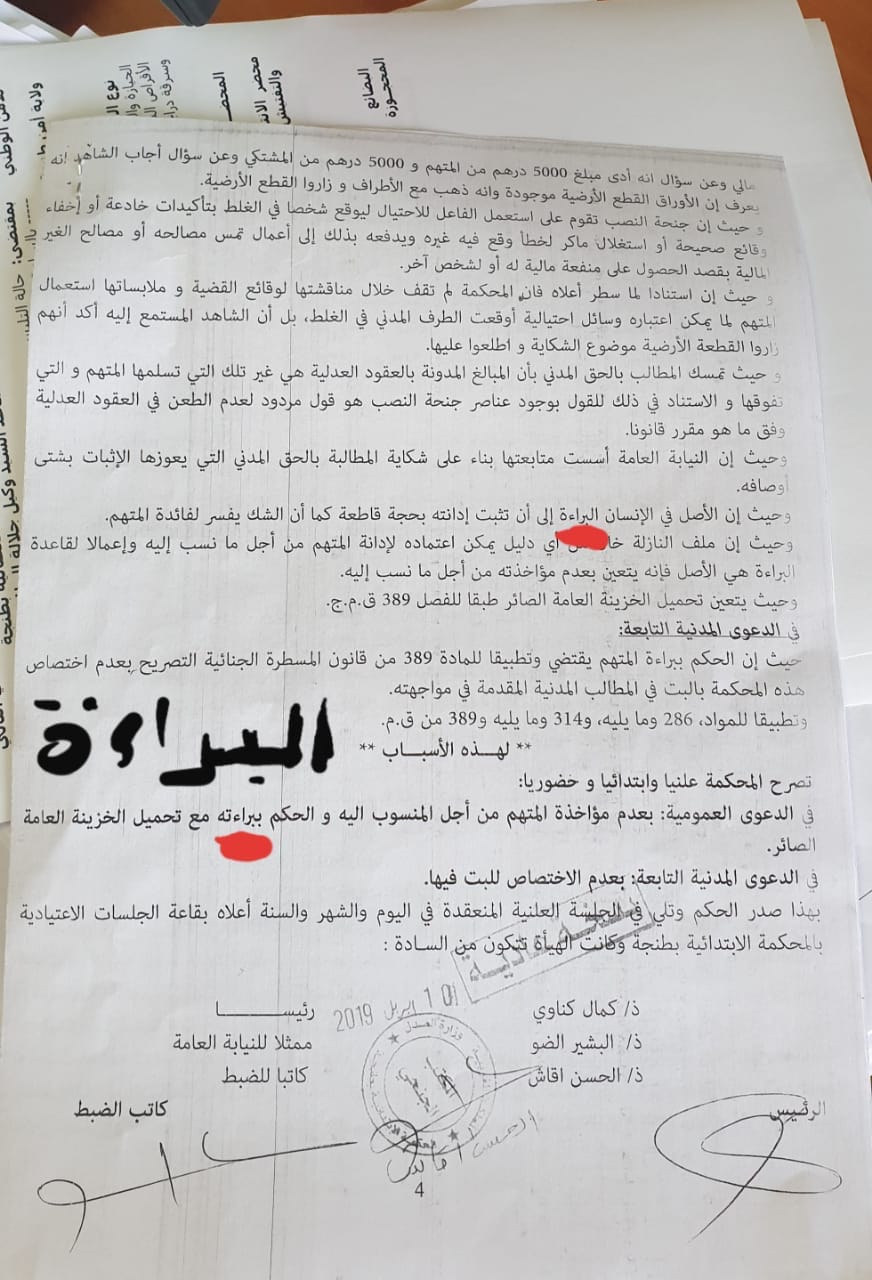 ويتعلق الأمر بمعاملة تجارية جمعته بأحد الأشخاص اقتنى الأخير منه 3 قطع أرضية، لكن المشتري قام برفع دعوى قضائية في حقه يتهمه بالنصب عليه وبيعه عقارات هي في ملك الغير.