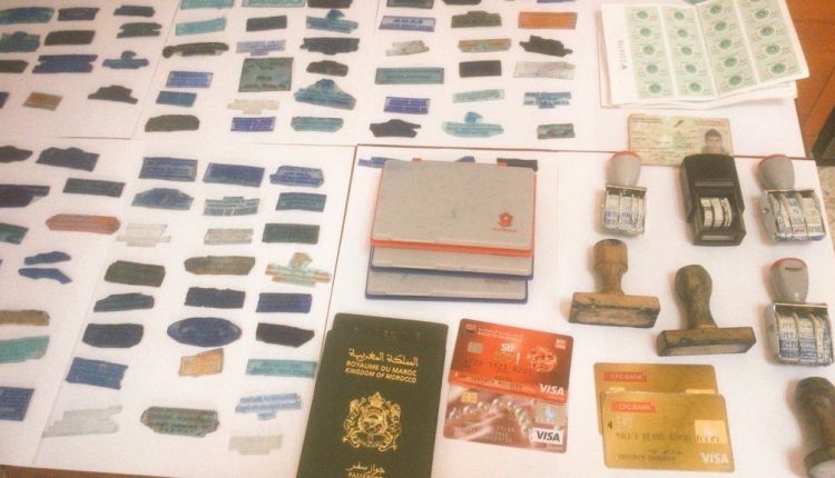 وذكر بلاغ للمديرية العامة للأمن الوطني أن فرقة مختلطة تتكون من الشرطة القضائية بمدينة طنجة والفرقة الوطنية للشرطة القضائية وعناصر من المديرية العامة لمراقبة التراب الوطني باشرت إجراءات البحث والتحري، حيث جرى توقيف المشتبه فيه بحي السعادة بمدينة طنجة وهو في حالة تلبس بحيازة معدات معلوماتية يشتبه في تسخيرها لأغراض التزوير، و20 ملفا يتضمن وثائق إدارية ومستندات شخصية في إسم الغير، علاوة على 80 طابعا مزورا يحمل خاتم مؤسسات عمومية ووكالات بنكية وموثقين وسلطات محلية وغيرها.