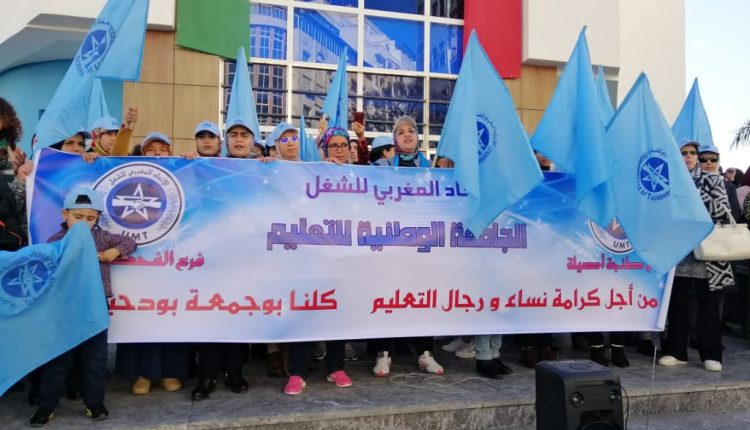 وجاءت هذه الوقفة استجابة لدعوة الجامعة الوطنية للتعليم بطنجة أصيلة دفاعة عن كرامة نساء و رجال التعيلم، المنضوية تحت لواء الاتحاد المغربي للشغل.