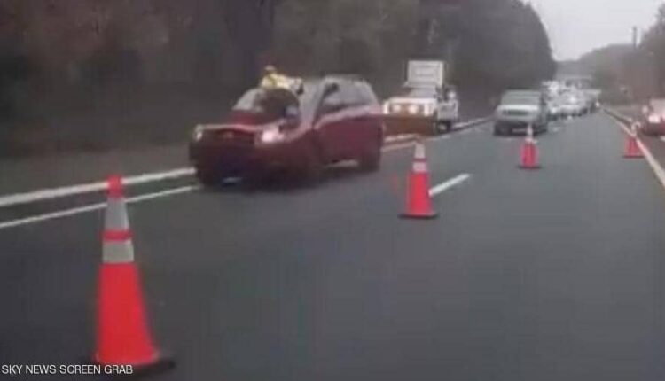 ويُظهر التسجيل المصور، الذي نشرته وزارة النقل بولاية نيويورك، على حسابها في “تويتر”، الاثنين الماضي، عاملا في دورية محلية للطوارئ على الطريق السريع يحاول توجيه حركة المرور في مكان وقوع حادث.