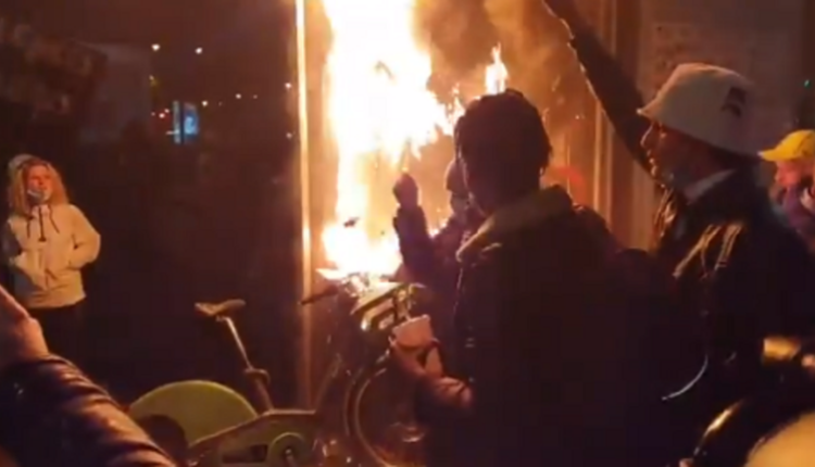 أكدت مواقع التواصل الاجتماعي، أن محتجين أضرموا النيران في بنك وكشك لبيع الصحف والجرائد في العاصمة الفرنسية باريس، فيما اعلن عن إصابة 37 شرطيا نتيجة المواجهات مع المتظاهرين.