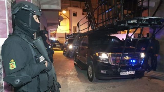 وأوضح بلاغ للمكتب المركزي للأبحاث القضائية التابع للمديرية العامة لمراقبة التراب الوطني أن التدخل الأمني الذي باشرته عناصر القوة الخاصة التابعة لفرقة التدخل السريع، أسفر عن توقيف ثلاثة متطرفين يشتبه في ارتباطهم بهذه الخلية الإرهابية، تتراوح أعمارهم ما بين 21 و38 سنة، وتربط أحدهم علاقة عائلية بمقاتل بصفوف “داعش” بالمنطقة السورية العراقية.
