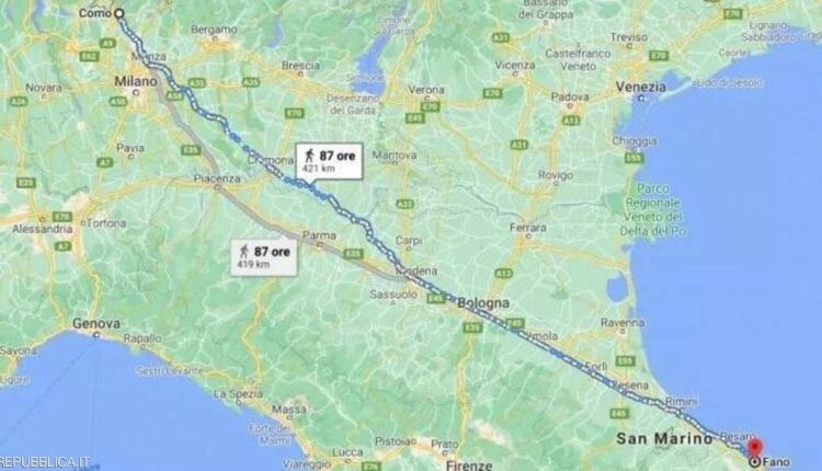 وقالت تقارير صحفية محلية إن الرجل البالغ من العمر 48 عاما، خرج من منزله لتهدئة غضبه بعد خلاف مع زوجته، ليصل من مدينة كومو شمالا إلى منتجع فانو وسط إيطاليا.