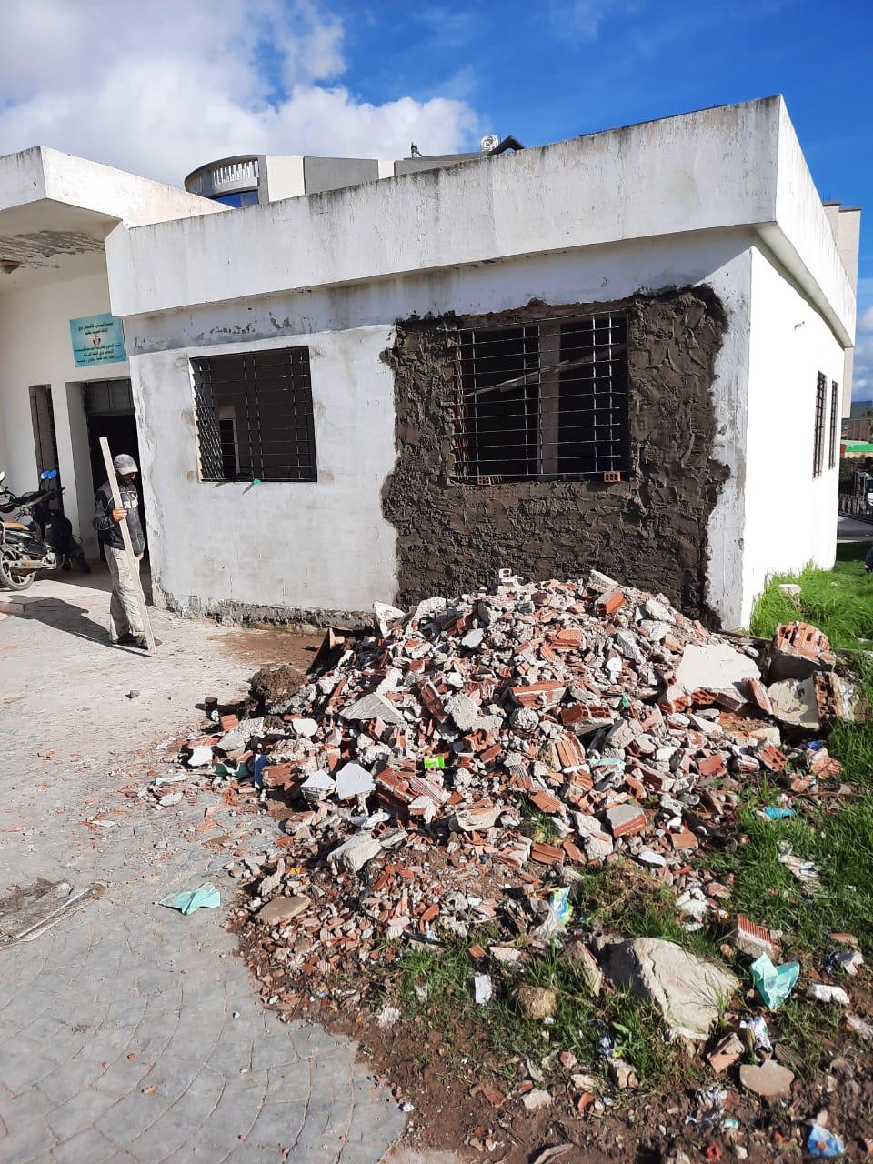 هذا المحل التجاري (كراج) الغير المتوفر اصلا في بناية المؤسسة المدنية المذكورة، إلا أن رئيسها قام بتغيير ملامح واجهة البناية سابقاً لنفس الغرض لكن تم ايقاف الاشغال وإعادة الوضع إلى ما كان عليه من طرف قائد الملحقة الإدارية 19 مكرر.