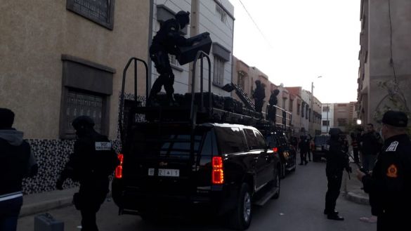 وأوضح أنه قد جرى توقيف أعضاء هذه الخلية الإرهابية في عمليات أمنية متزامنة في أربعة أحياء سكنية مختلفة بمدينة وجدة، اضطر خلالها عناصر القوة الخاصة التابعة للمديرية العامة لمراقبة التراب الوطني لاطلاق عبوات صوتية لتحييد الخطر الصادر عن المشتبه فيه الرئيسي، كما تمت ملاحقة المشتبه فيه الثاني وتوقيفه في أسطح المنازل المجاورة خلال محاولته الفرار في ظروف من شأنها تعريض نفسه وسلامة الغير للخطر.