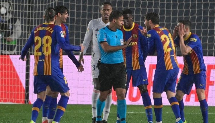 وقبل 6 دقائق على نهاية الوقت الأصلي للمباراة، عندما كانت النتيجة تشير لتقدم الفريق الملكي بنتيجة 2-1، خطف لاعب برشلونة، الدنماركي مارتن برايثوايت الكرة في منطقة جزاء “الميرينغي” من أمام مدفع الريال، الفرنسي فيرلاند ميندي، فقام الأخير بجذب نجم الفريق الكتالوني من يده، ليطالب لاعبو “البلوغرانا” باحتساب ركلة جزاء، ولكن الحكم خيسوس جيل مانزانو لم يحتسبها مخالفة تستدعي ركلة جزاء وأمر بمواصلة اللعب.