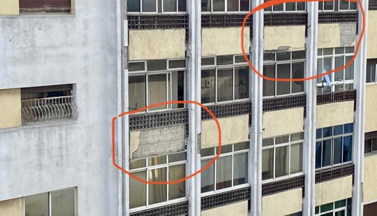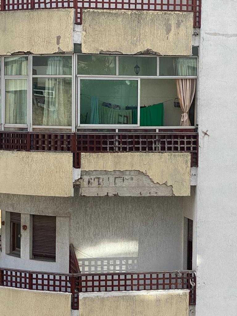 وكشفت الانهيارات الجزئية لواجهتي هذه البناية مدى هشاشة مواد البناء المستعملة في الواجهتين، وتُنذر بمزيد من التآكل والتساقط، في حالة إذا لم يكن هناك تدخلا من أجل تحييد هذا الخطر المحدق بحياة المواطنين، خاصة أن العمارة تتواجد في منطقة تشهد حركية مرورية مستمرة على مدار النهار والليل.