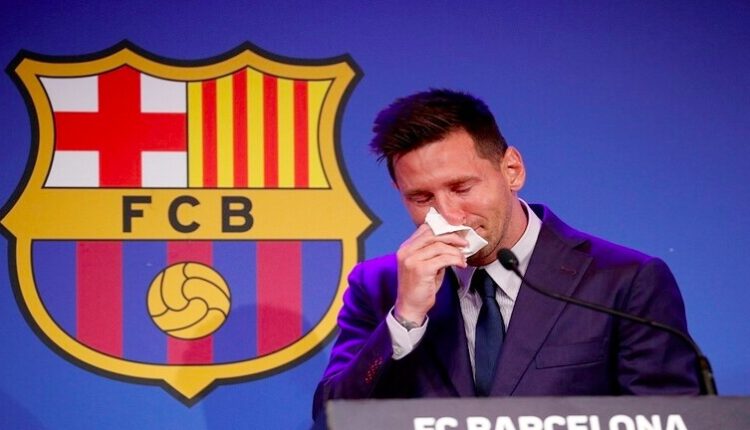 أجهش نجم برشلونة الارجنتيني ليونيل ميسي بالبكاء في بداية مؤتمره الصحافي الاحد الذي سيعلن فيه رحيله نهائيا عن صفوف النادي الذي امضى في صفوفه 20 عاما في الوقت اذي يرجح انتقاله الى صفوف باريس سان جرمان الفرنسي.