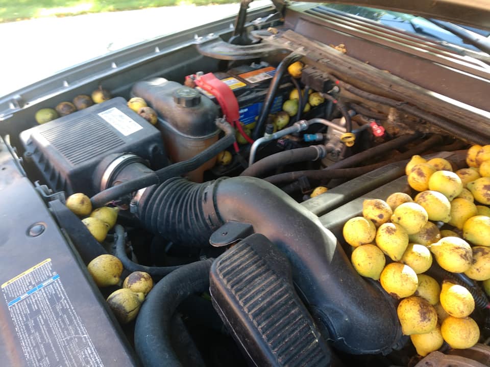 وتنمو ثمرة جوز كبيرة في حديقة منزل الرجل صاحب السيارة، الذي حقق حصادا كبيرا هذا العام. وحين لم يستعمل سيارته لمدة 4 أيام، اعتقد الحيوان أنها المكان المناسب لتخزين طعامه.
