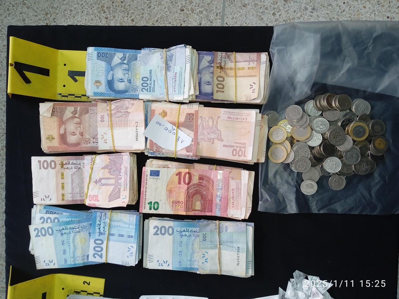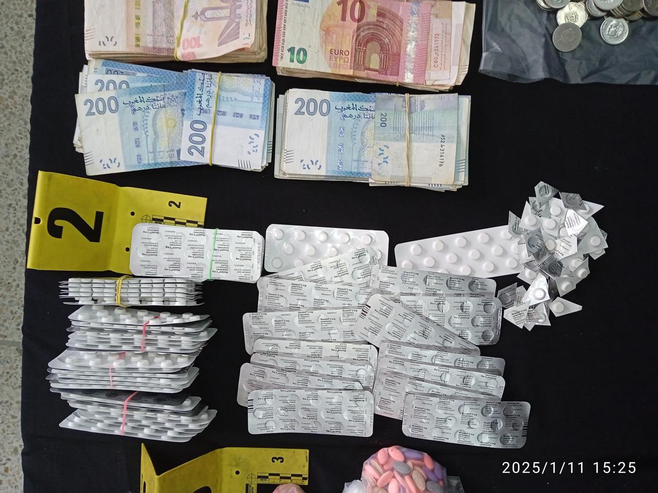 وأفادت مصادر أمنية أن عملية التوقيف تمت داخل مسكن المشتبه فيهما بأحد التجمعات السكنية بطنجة. وأسفرت عمليات التفتيش عن ضبط 1047 قرصًا مخدرًا من نوعي “ريفوتريل” و”تراكيمازين”، بالإضافة إلى 250 قرصًا من نوع “إكستازي”. كما عُثر بحوزتهما على 47 غرامًا من مخدر “الهيروين”، و7 غرامات من مخدر “الكوكايين”، ومبلغ مالي يُشتبه في كونه من عائدات هذه الأنشطة الإجرامية، إلى جانب هواتف نقالة، وثلاثة موازين إلكترونية، وسيارة نفعية كانت تُستعمل في توزيع المخدرات.