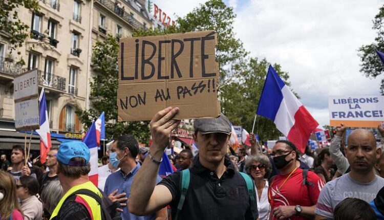 وجمعت الاحتجاجات ضد التصريح الصحي حوالي 200 ألف شخص في كل أنحاء فرنسا السبت، ودعا المنظمون إلى مزيد من التظاهرات في نهاية هذا الأسبوع.